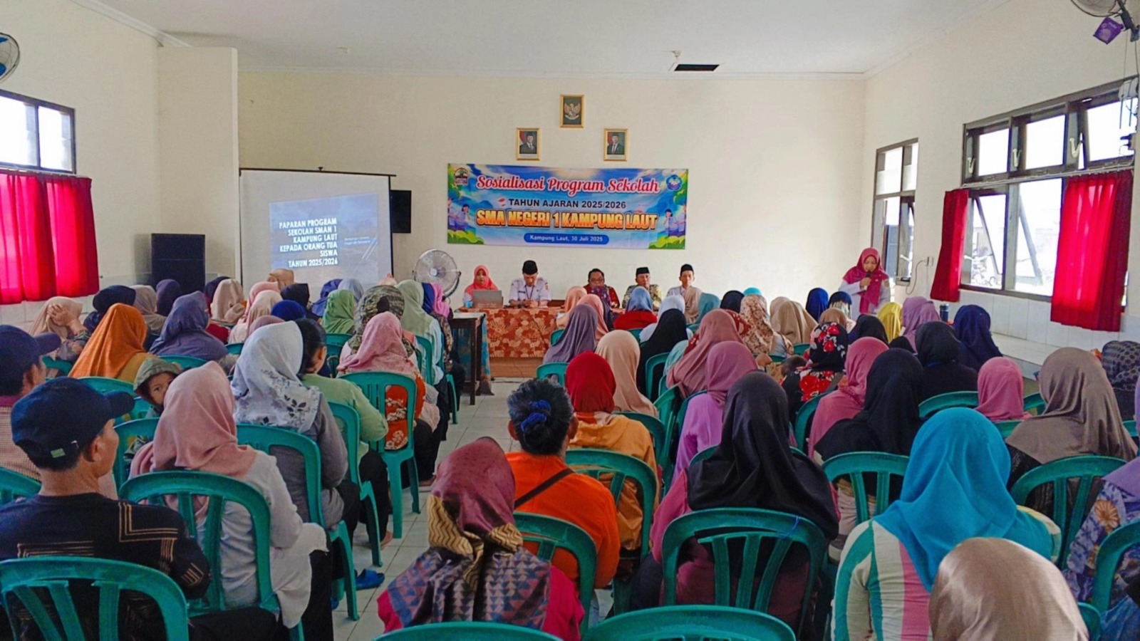 Kampung Laut, 24 September 2025 – SMAN 1 Kampung Laut menyelenggarakan sosialisasi anti-bullying pada Rabu (24/09/2025) dengan menghadirkan narasumber Bapak Edi Sumarno anggota Kepolisian Sub Sektor Kampung Laut. Kegiatan ini diikuti oleh seluruh siswa, guru, serta tenaga kependidikan, bertujuan untuk menanamkan kesadaran akan bahaya perundungan dan pentingnya menciptakan lingkungan sekolah yang aman dan nyaman.